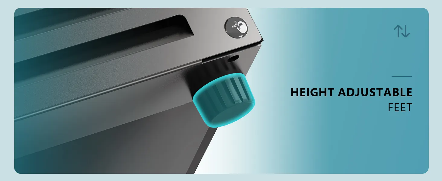 Two independent drawers with self-locking rails (50 kg load each) for wine, cans, or food.